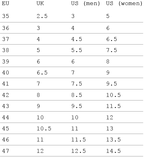 Size chart